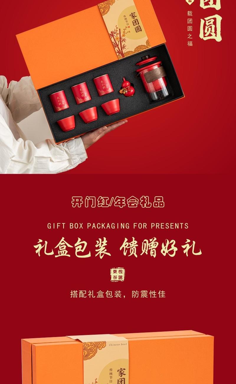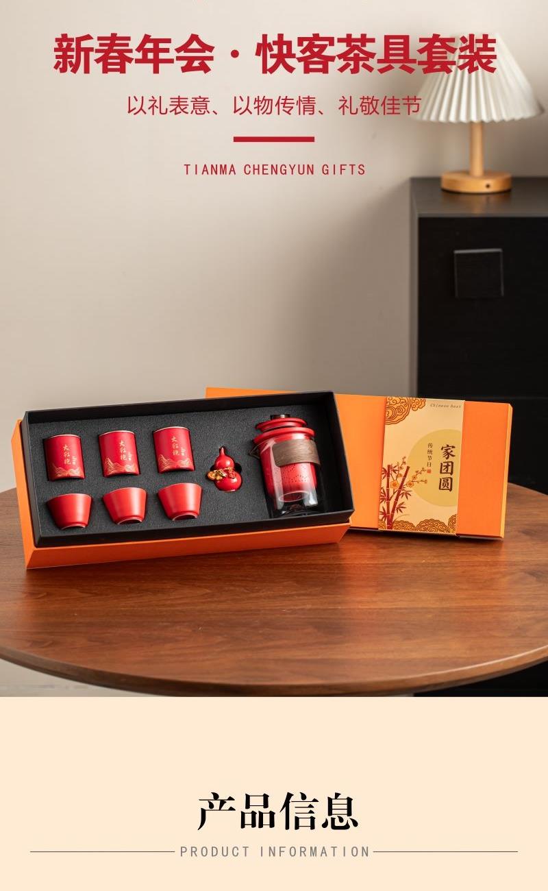 开门红年会礼品家团圆快客茶具摆件八件套