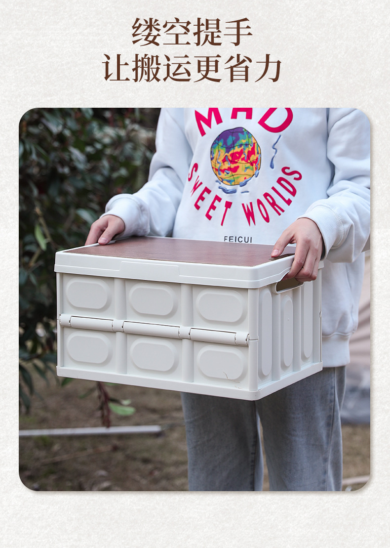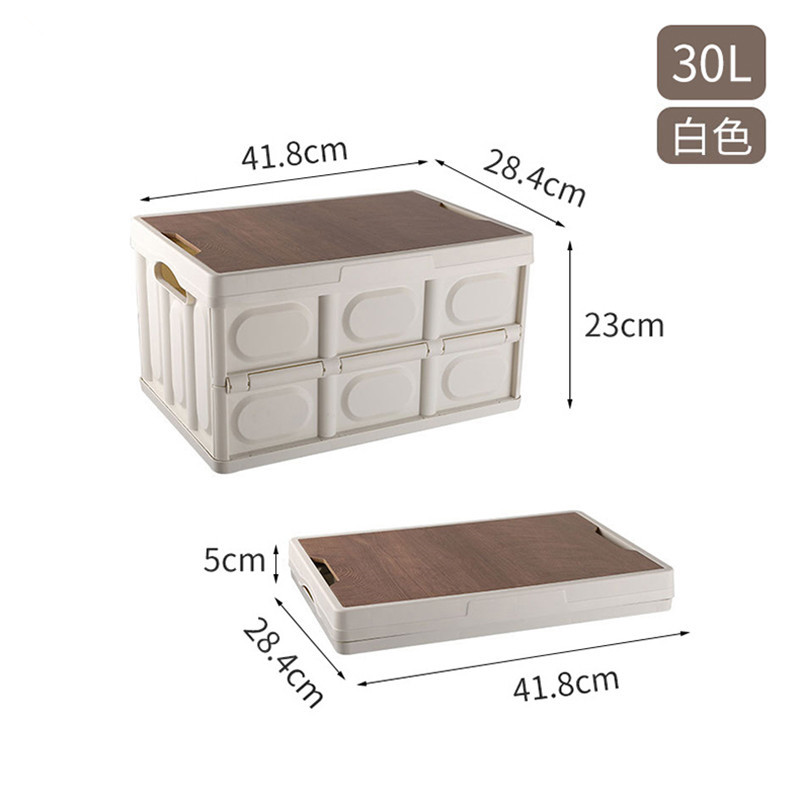 材质:PP+木板 颜色:米白 尺寸:23.5*42*28.5cm(30L)/29*52.5*36cm(55L) 容量:30L/55L 净重:1.4kg/2.3kg 上架为30L小号,如咨询大号,请联系相关业务 1、折叠收纳,不占空间; 2、加固PP材质,稳固耐用; 3、镂空设计,方便挪移; 4、木板封顶,美观大方;