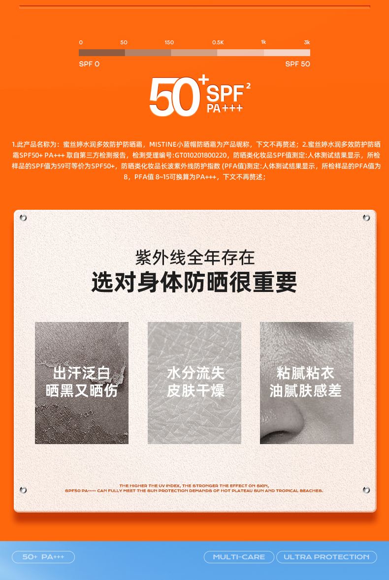 一句话卖点:全光谱沙滩级户外防晒 水润更养肤