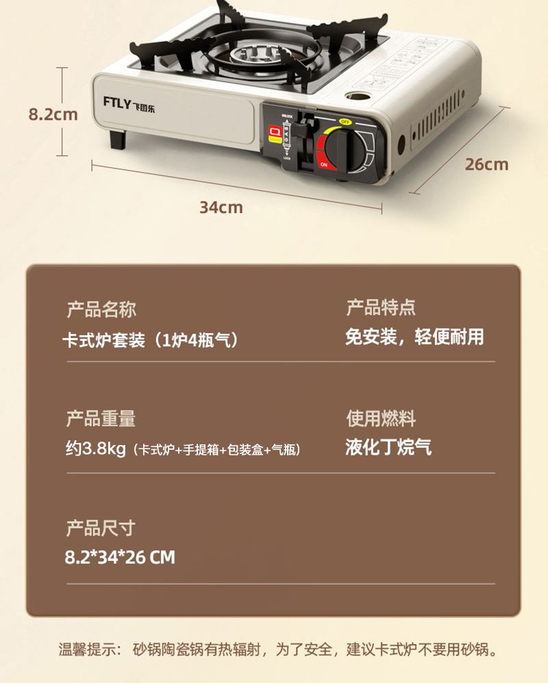 FTLY飞图乐户外卡式炉烧烤套装-1炉4瓶气KSL01