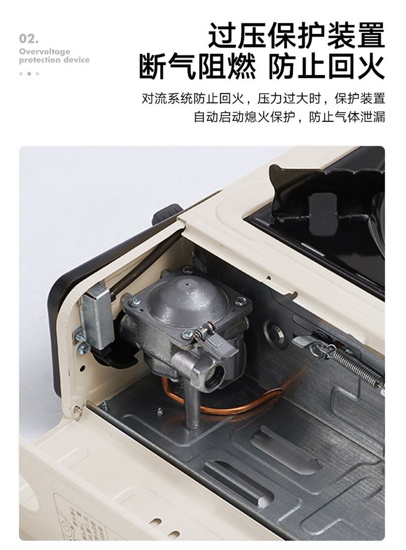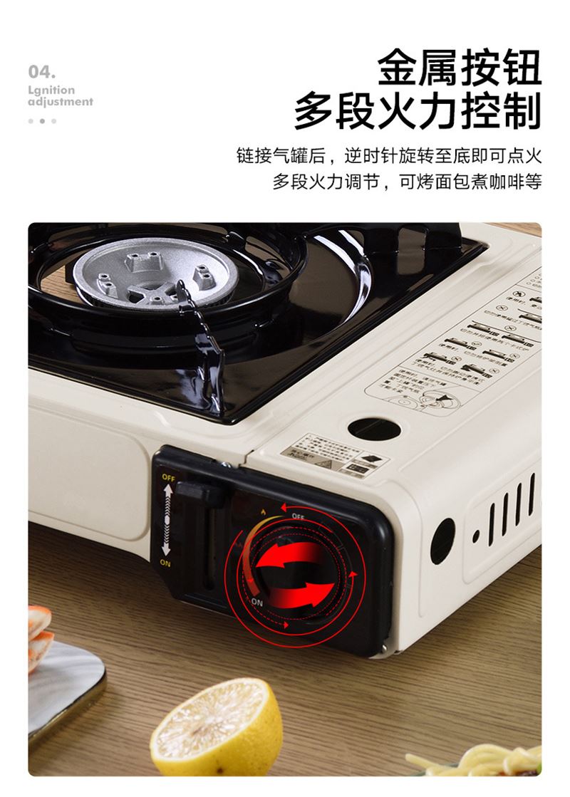材质:铁+ABS 展开尺寸:26*34*2cm 颜色:米白 类型:卡式气炉 净重:3kg 1、小巧便携,无烟烹饪; 2、过压保护安全阀,放心使用; 3、节能省气,强大火力; 4、多档调节,自由切换; 5、卡式炉手提盒包装,携带方便