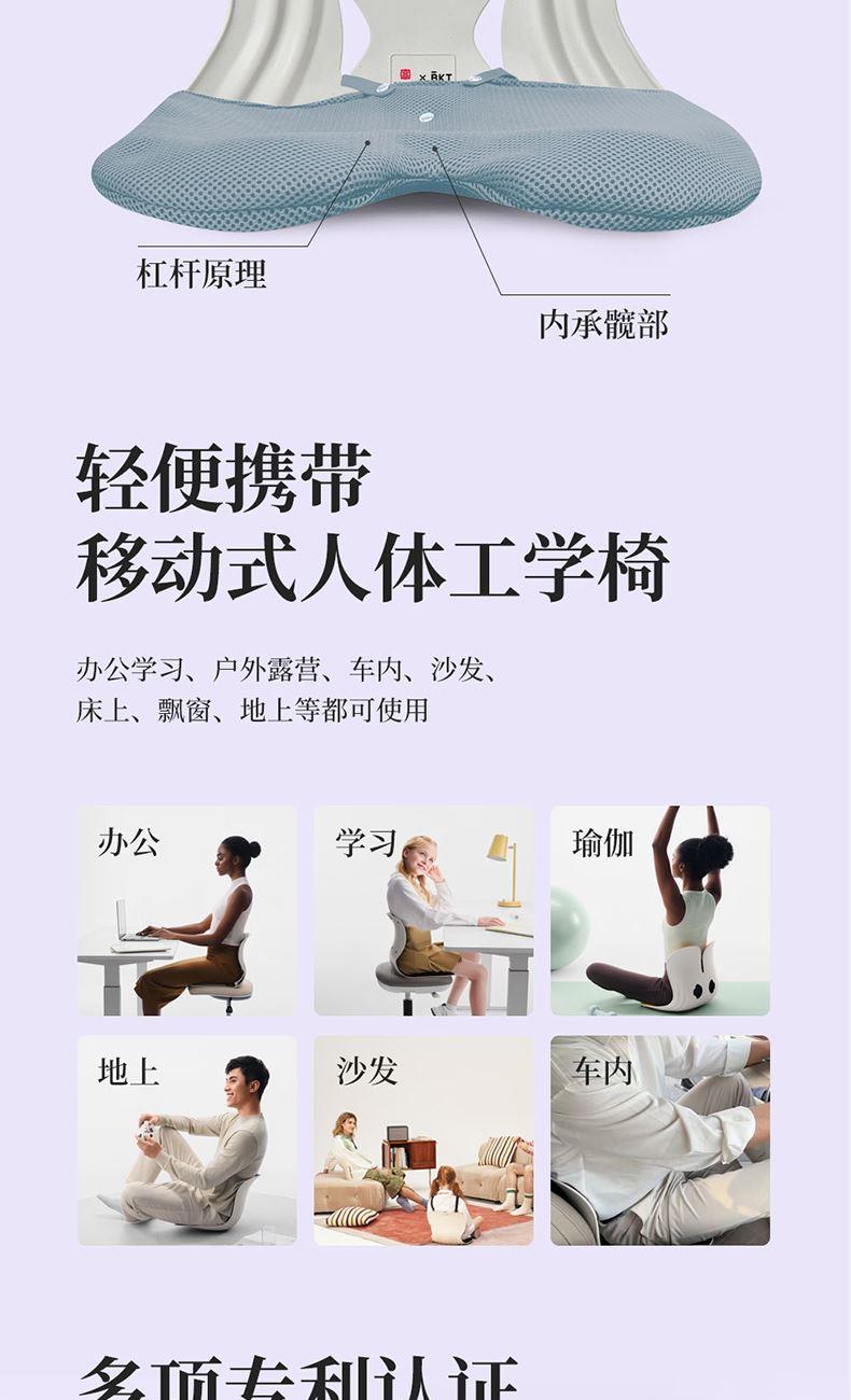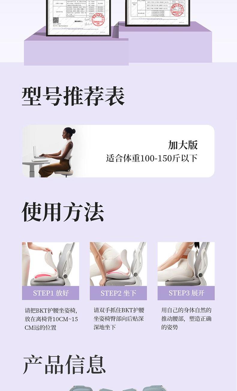 产品型号:加大版 海雾蓝(带坐套) 产品颜色:海雾蓝 产品尺寸:422*362*310mm 产品重量:约930g 产品材质:PP合成树脂/布(聚醋纤维) 适合体重:体重100斤-150斤 坐套面料:聚酯纤维 坐套尺寸:415*320mm 适宜人群:坐姿不正确人群,上班族、学生、教师等久坐人群,有跷二郎腿习惯人群, 希望拥有正确坐姿人群,加宽加大版更适合体型偏大人群。