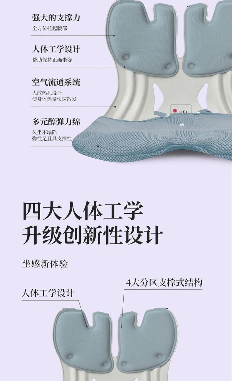BKT人体工学护腰坐姿椅加大版海雾蓝(带坐套)